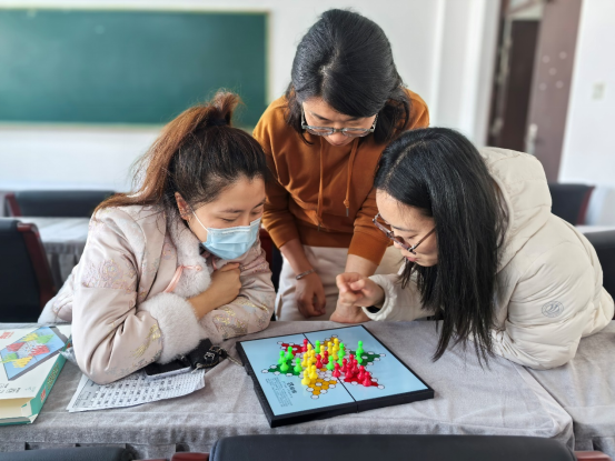 跳棋赛区则呈现出另一种风格,色彩斑斓的棋盘上,棋子跳跃穿梭,看似轻松明快,实则暗藏玄机。老师们精心策划行进路线,既要为自身搭桥铺路,又要巧妙阻挡对手,现场充满了欢声笑语和智慧的碰撞。