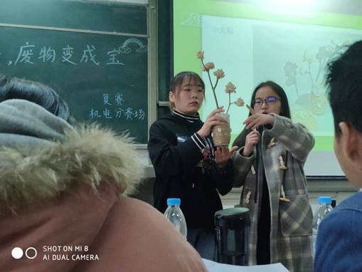 和材料与化工学院一同举行的“垃圾要分类,废物变成宝”复赛在教一201与202拉开了帷幕。复赛分为两个场地,分别是材化分赛场和机电分赛场。出席此次活动的嘉宾有机电学生会主席邓卓、青协主席辛豫婕、科协主席王雄辉和材化团委副书记刘锐、团委宣传部部长苟妮、团委组织部部长周耀东以及青协各部部长。