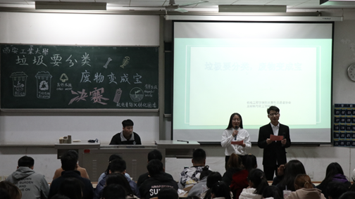 青年志愿者协会和材料与化工学院团委联合举办的“垃圾要分类,废物变成宝”活动决赛在教一楼-101教室圆满举行。出席的嘉宾有总务处公寓管理科科长马新厂老师、办公室主任韩镔老师、高磊老师,足球投注网站