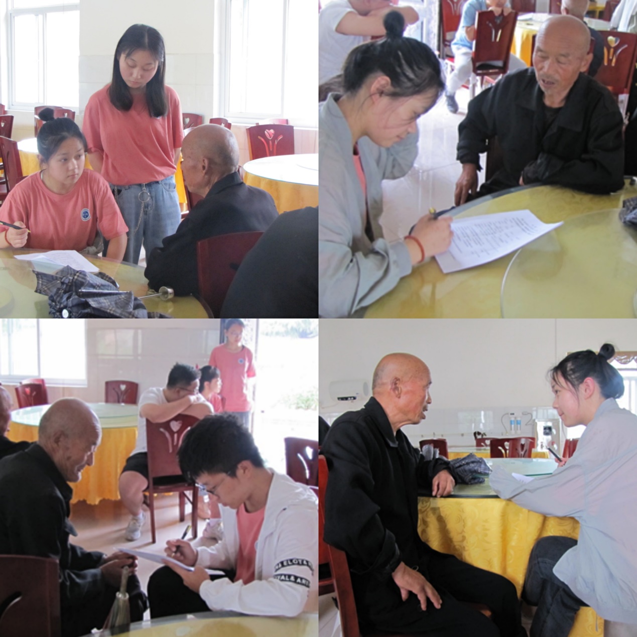 晨起大雨即至,途中巧遇三位老人与团队在同一处避雨,便友好、虚心地与老人交谈起来,老人亲切、热情地回答了我们的问题。通过交谈,团队了解到三位老人均已五十岁以上,家中以种植业为主,年轻人外出务工,因此常年因劳动力严重缺乏致使家中经济不富裕。老人讲到自己的儿女已两年在外忙碌未归家时,思念之情溢于言表。交谈结束时,团队表达了慰问和关怀。之后,团队便马不停蹄地赶去拜访了村中的贫困户。其中一位是退伍老兵,老人1960年3月1日入伍,只收边疆,吃苦耐劳保卫祖国整整八年,给了团队深刻的启迪,大家深感作为一名大学生的责任和使命。通过探访贫困户,团队了解了当地脱贫仍需解决的问题,也感受到了当地村民对于脱贫致富的渴望。