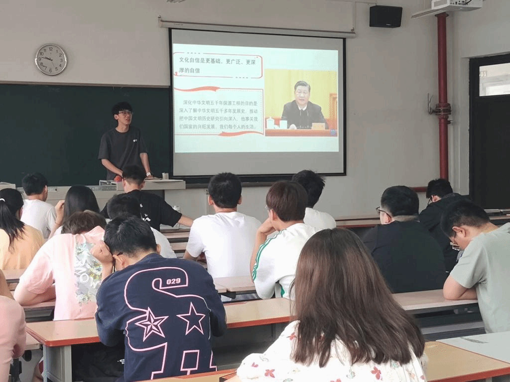 活动开始,主持人胡铁铮向大家介绍了三位宣讲的同学,以及三位同学分别准备的团课主题。