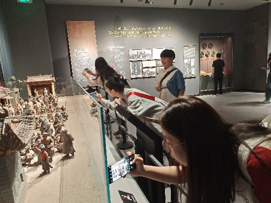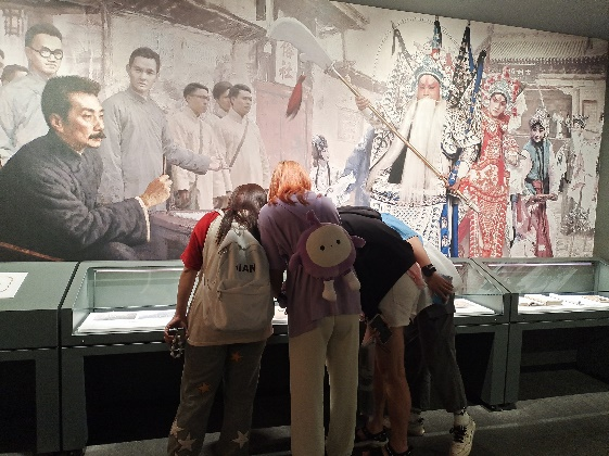 在博物馆里,队员们观看了展示的剧目服装、道具和乐器等,还有许多秦腔的现代演绎和创新形式。通过这些现代元素,队员们能够看到传统艺术如何与现代社会相结合,创造出新的艺术形式和表达方式,这让队员们对传统文化的传承方式和发展方向有了更深入的思考。最后队员们有幸观看了一场精彩的表演。演员们身着华丽的戏服,展现出高超的表演技巧和声音的婉转动人。他们的激情演绎让队员们深深陶醉其中,仿佛穿越时光,置身于古代的戏剧舞台之上。这让队员们更加直观地感受到了秦腔的艺术魅力。