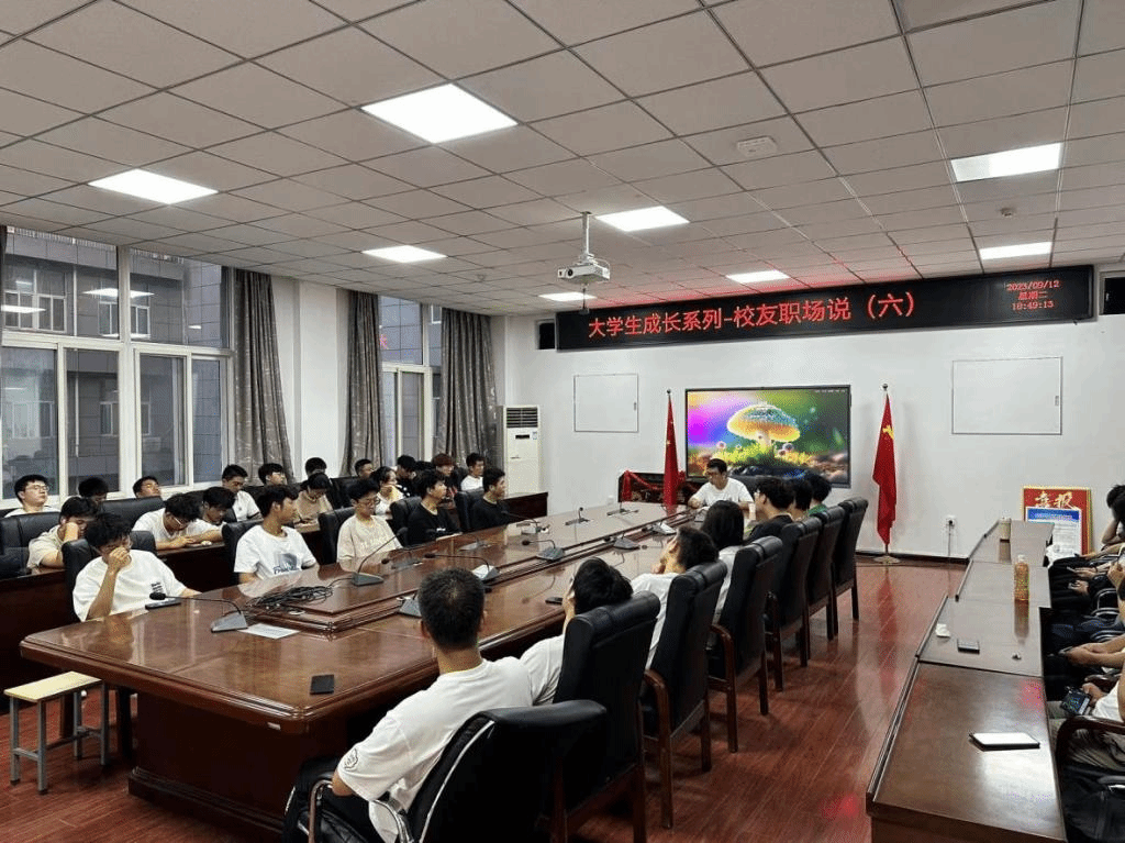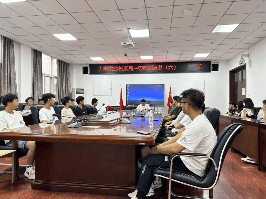 在工2—310举办了学生成长系列活动第六讲——校友职场说。本次讲座由校友张联峰主讲,王浩文主持,学院2021级、2022级学生代表共同参加。