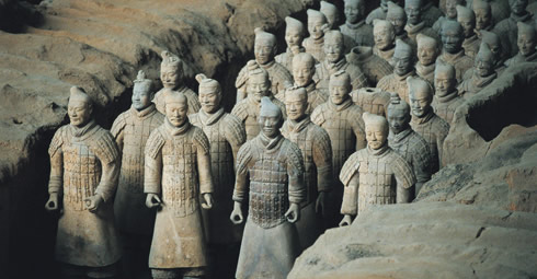 collection of terracotta figures showcasing the armies of Qin Shi Huang, the