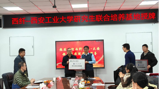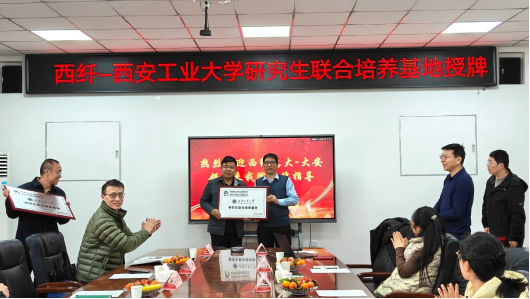 首先,举行了“西纤---西安工业大学”研究生联合培养基地授牌仪式,聘任吴双智、左振、刘涛、王晓彬4位企业骨干为西安工业大学研究生企业指导教师并颁发了聘任证书。